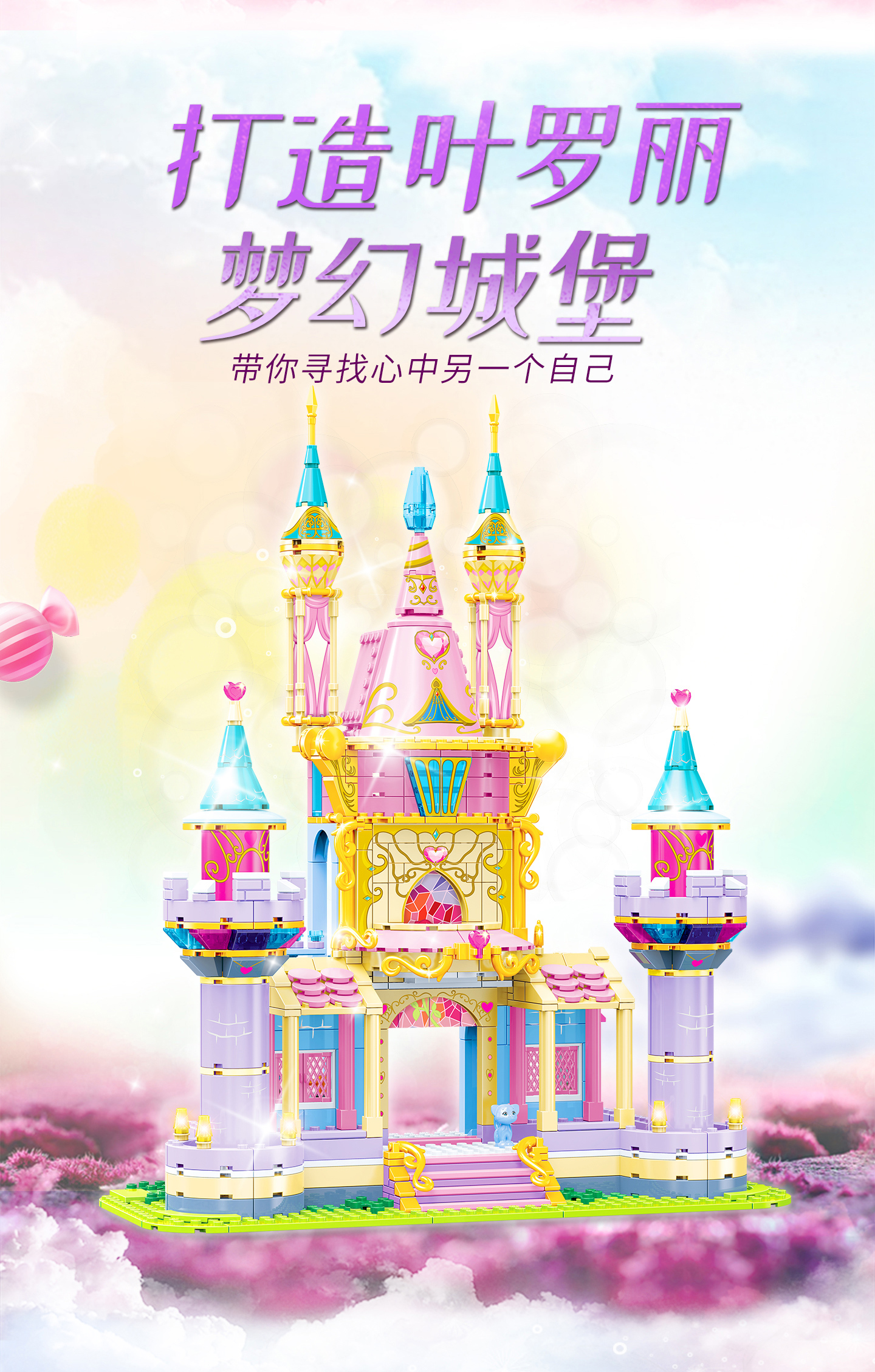 此次推出的葉羅麗積木場景,主要有靈公主的居住場所——靈公主花圣殿、以藍色為主色調(diào)的城堡——冰公主冰宮殿、以思思送給孔雀的別墅造型設計的房子、辛靈為庇護葉羅麗仙子,而創(chuàng)建的葉羅麗娃娃店,還有就是主角羅麗公主的城堡5款造型供消費者選擇。