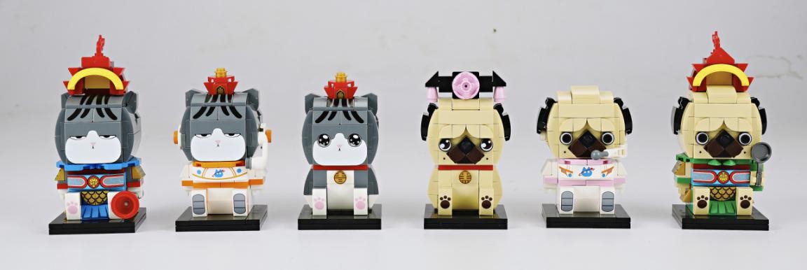 以“吾皇”經(jīng)典形象為設(shè)定參考,通過積木拼搭來還原整體造型;配有統(tǒng)一底座。積木玩具精準(zhǔn)地抓住了吾皇的形象外形,頭戴清朝皇冠,貓咪身體條紋細(xì)節(jié)得以精美戰(zhàn)線,不少細(xì)節(jié)也通過移印技術(shù)得以展現(xiàn)。
