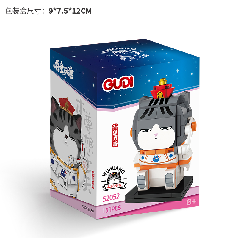 以航天航空作為靈感,契合嫦娥登月的探月熱度,以宇航員形象為吾皇造型的設(shè)定參考,通過積木拼搭來還原整體造型;配有統(tǒng)一底座。貓咪身著宇航服,搭配高冷眼神,高度還原了吾皇萬睡里吾皇精典表情。