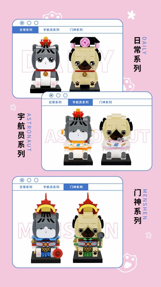 吾皇萬睡×古迪積木此次共上線“經典系列、航天系列、門神系列”的六款聯(lián)名積木。為最大限度地還原#吾皇巴扎黑#的可愛形象,系列積木特別采用了具有弧度顆粒方塊進行設計制作,為積木的整體造型增添了視覺上的Q萌感,還原了吾皇傲嬌、巴扎黑呆萌的小性格。